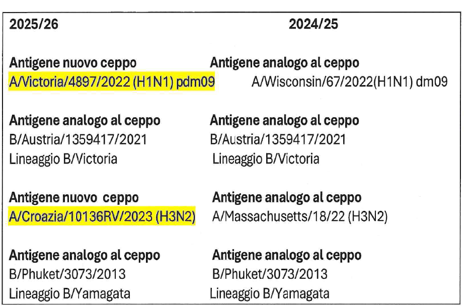 Il vaccino approntato quest’anno per la campagna antinfluenzale, secondo le indicazioni dell’OMS e del Ministero della Salute è un vaccino QUADRIVALENTE, con una composizione diversa da quella dello scorso anno; in particolare: